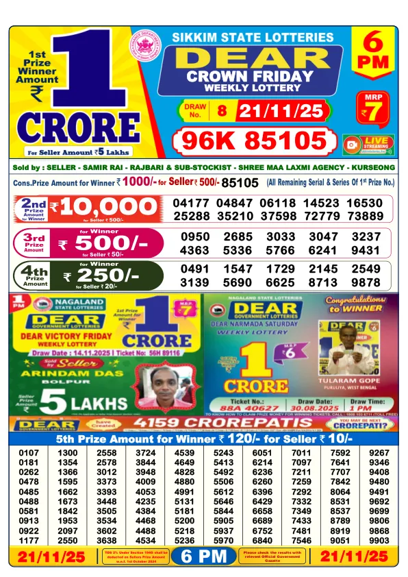 The state offers multiple options, so you can participate in the Dear Lottery Sambad Live draw at different times: